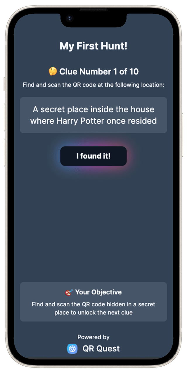 Just create a new hunt, set clues, print out the QR codes, hide them, and watch the adventure unfold!