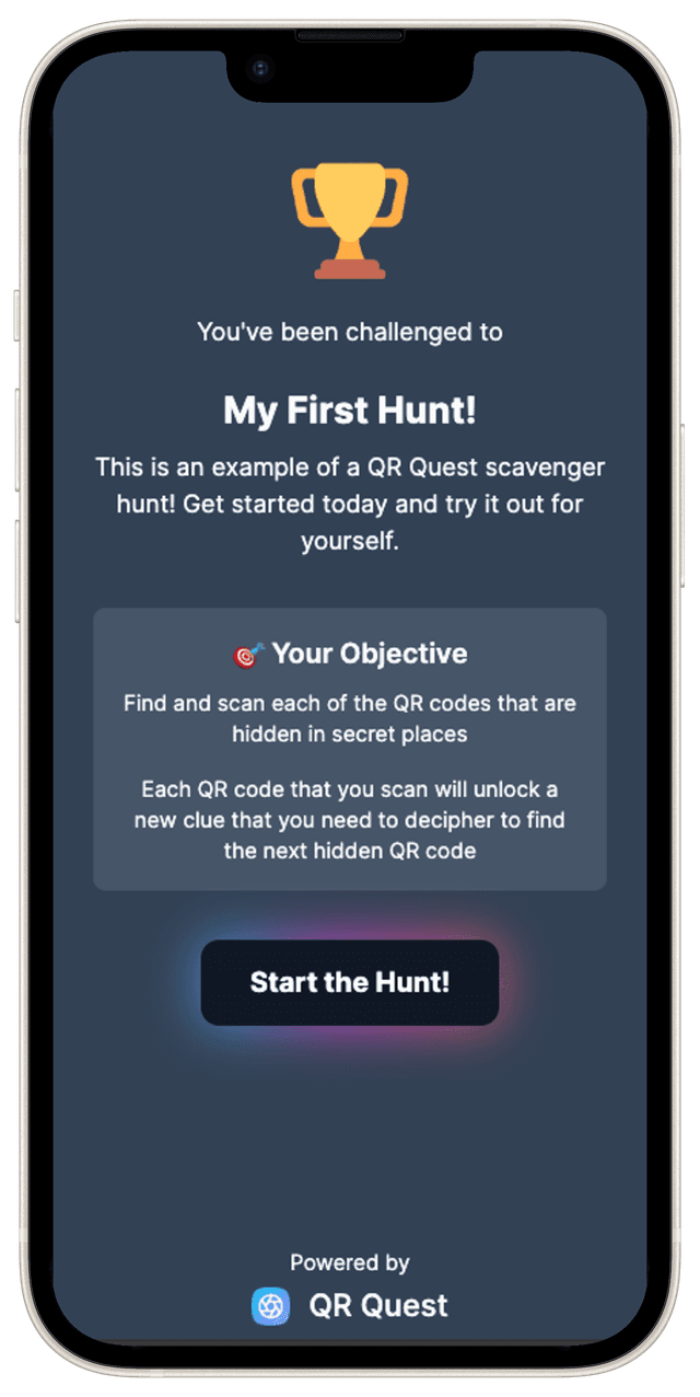Hunters scan the QR codes to reveal the clues, and follow the directions to complete the hunt. It's that simple!